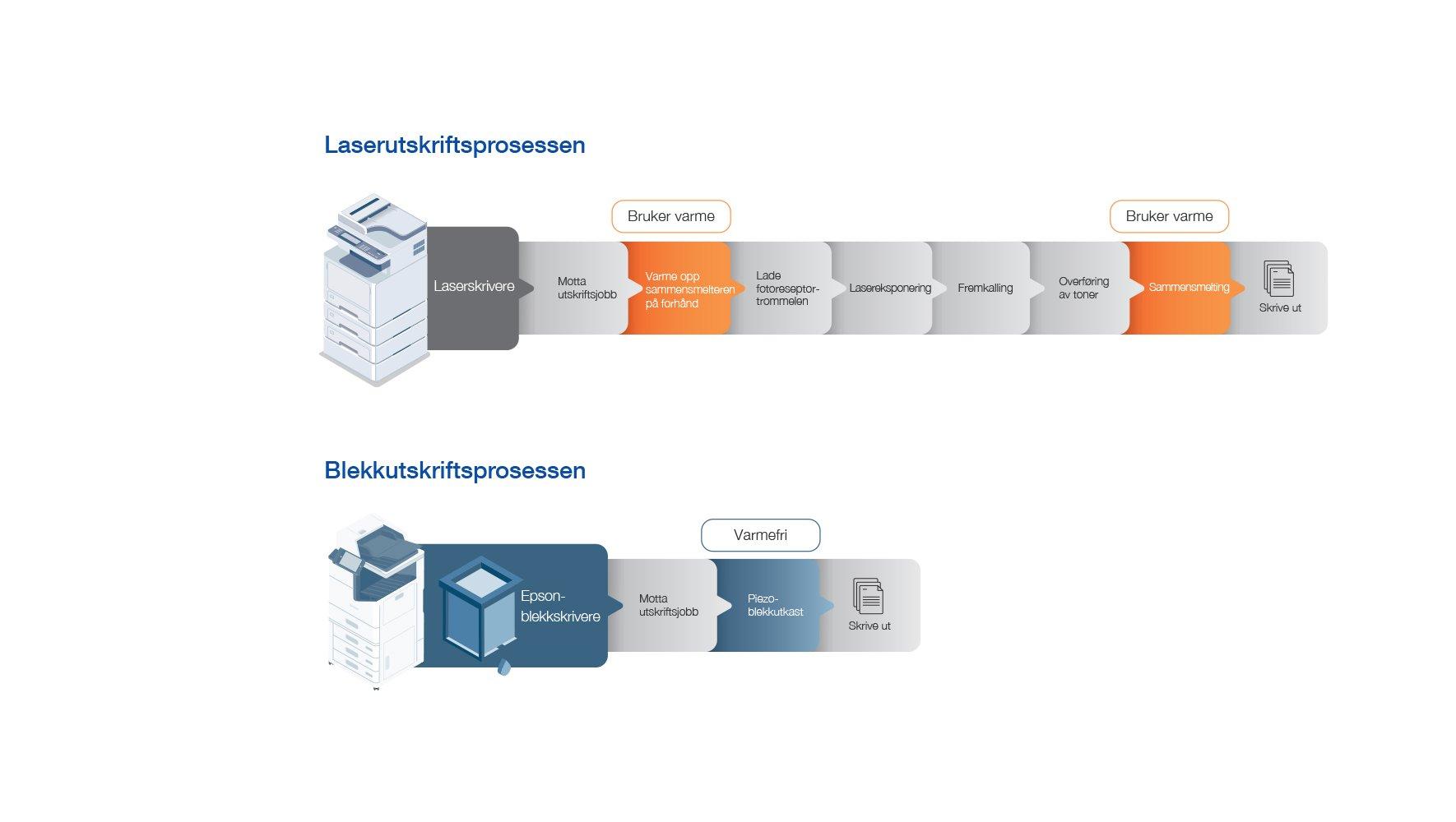 Varmefri utskriftsteknologi minsker behovet for strøm fordi den ikke bruker strøm til å varme opp.