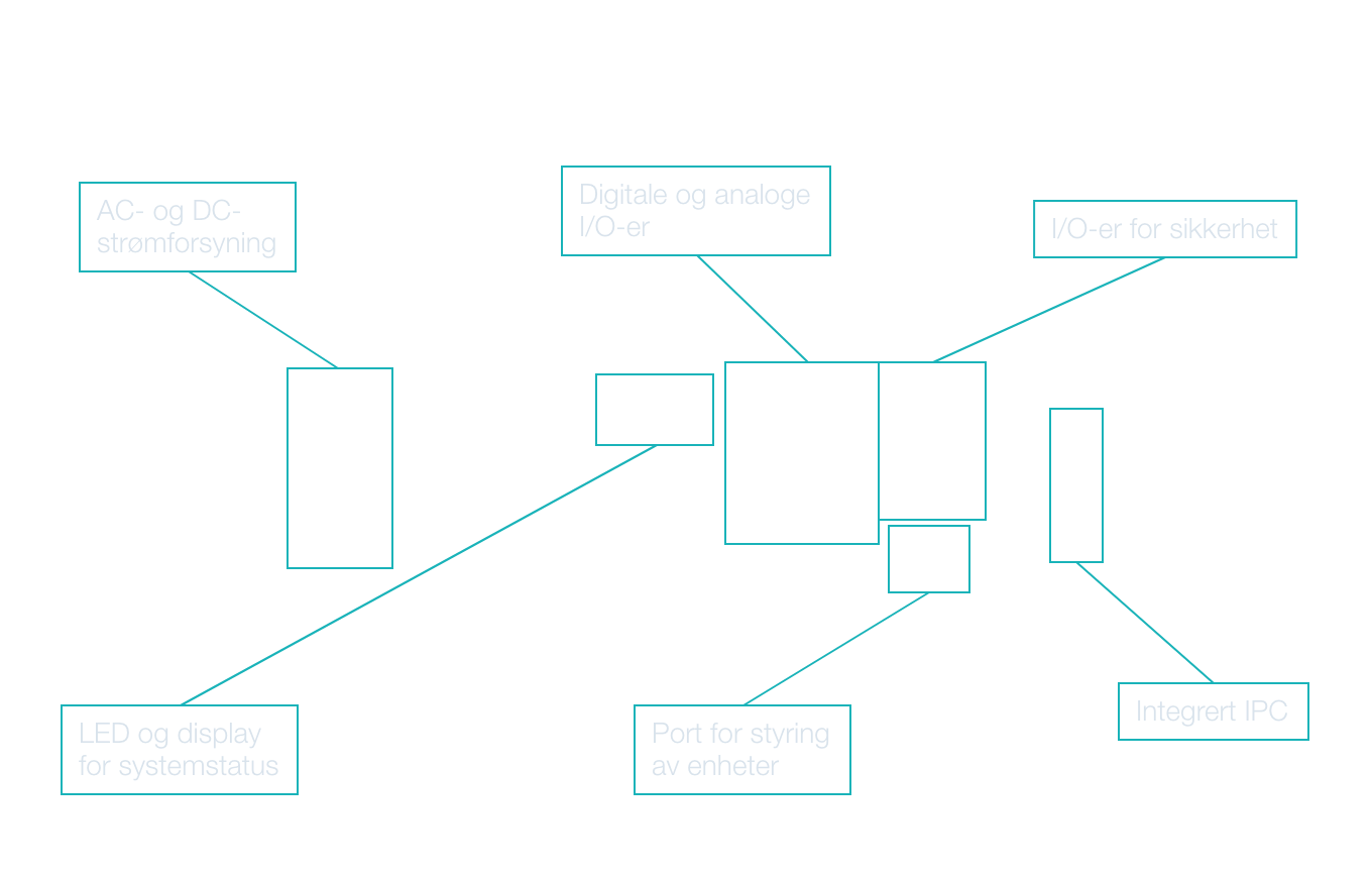 I/O-er for sikkerhet | 10 × inngang, 6 × utgang |